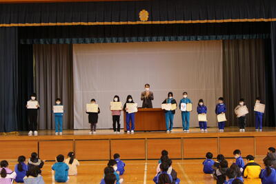 三学期に全校で賞状をもって記念写真をとる予定です。