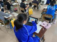 今日の5年生では、「これからの未来に、期待される工業製品にはどんなものがあるのか。」を課題に、インターネットで調べたことをロイロノートの付箋に書き、提出します。提出されたものは、プロジェクターで映し出し、みんなで共有しながら、学びを深めていきました。