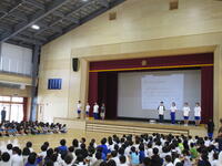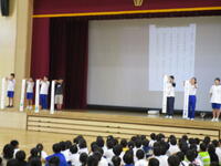 7月14日(月)に児童朝会が行われました。執行部から一学期の活動の振り返り、夏休みのめあてが発表されました。めあてを守って、楽しい夏休みにしてほしいと思います。