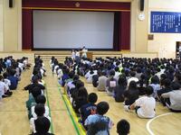 8月28日に、講師の先生をお招きして「世界遺産『平泉』出前教室」を行いました。平泉の歴史や中尊寺にまつわるお話をクイズや映像などを交えながら教えていただき、楽しく学習することができました。中尊寺にまだ行ったことのない子も多数いるため、興味津々に話を聞いていました。10月には実際に中尊寺や毛越寺を訪れる予定です。子どもたちにとって、見学がとても楽しみになったと思います。