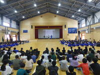 児童会スローガン「なかよく元気にきょう力しきずなをふかめる花泉小学校」